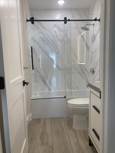 Our bathroom remodeling services include complete demolition, plumbing and electrical upgrades, custom tile installation, modern vanities, countertops, lighting, and premium fixtures. We work with durable, high-quality materials to create bathrooms that are not only stylish but also built to last.